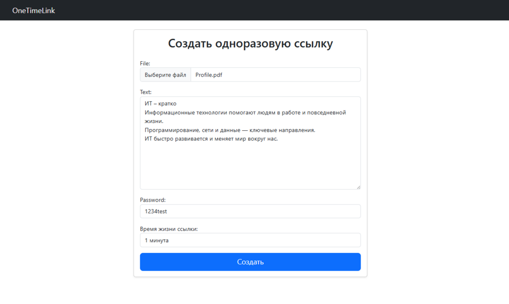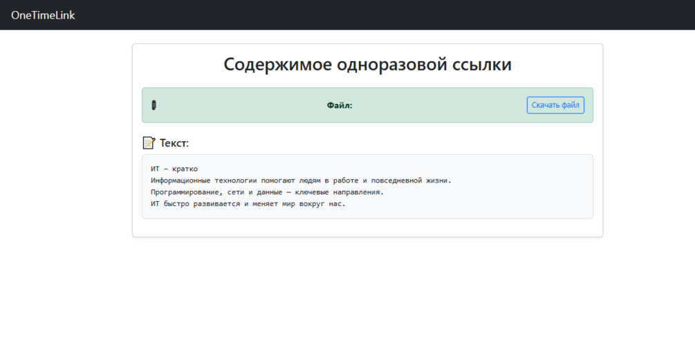 I’m selling a ready-to-use Django mini-project — OneTimeLink, a service that allows you to securely share files and messages via one-time links. Once the link is opened, the data is automatically deleted.